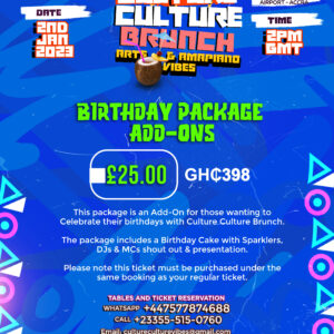 Are you attending in a large group please choose the group tickets option and email or Whatsapp us for a personal package.
