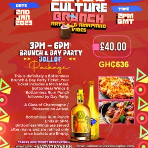 Here at culture culture, we want to maximize your Bottomless Experience and that is why we are providing you with 90mins of BOTTOMLESS WINGS & BOTTOMLESS RUM PUNCH or FRUIT PUNCH. YES, YOU HEARD RIGHT BOTTOMLESS WINGS & RUM PUNCH!. Making this the first and most anticipated DAY PARTY of the year!